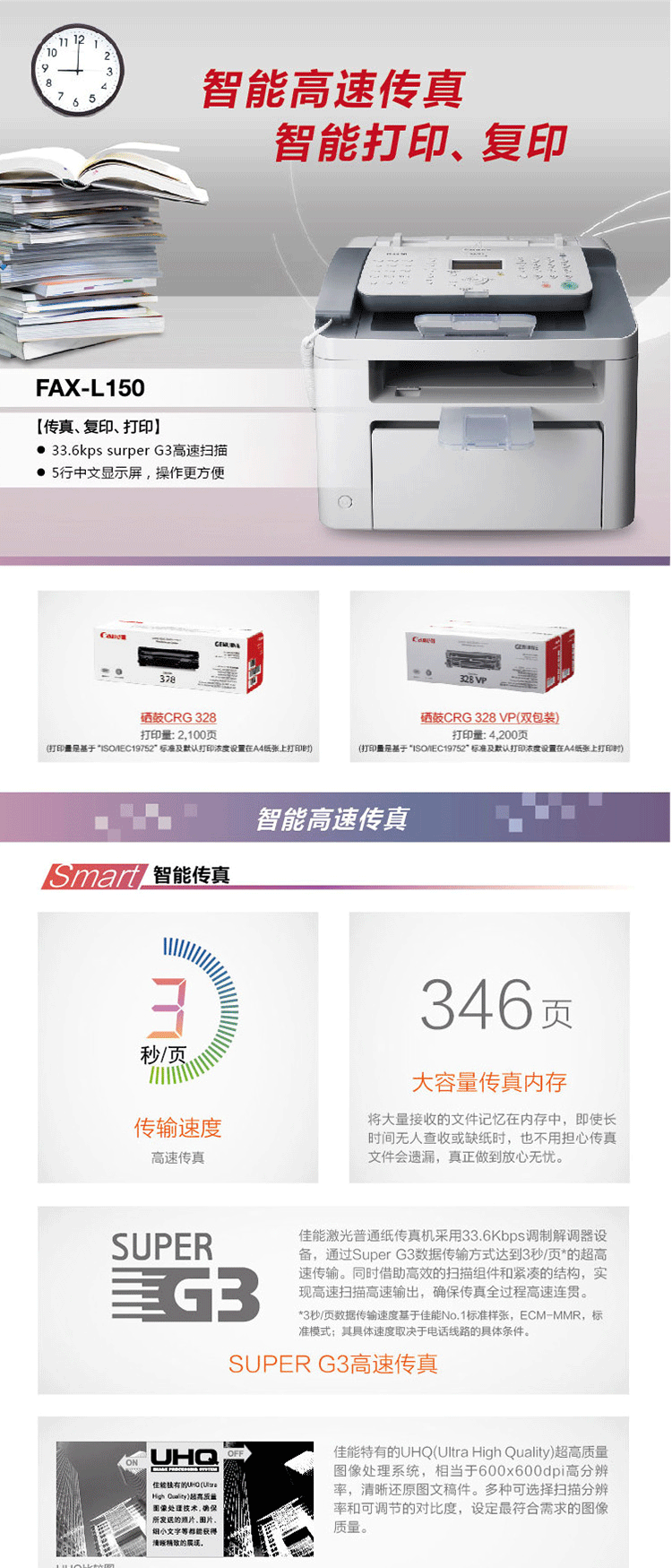 | 耗材容量 | 一體化硒鼓,CRG328,2100頁;隨機約1000頁 |